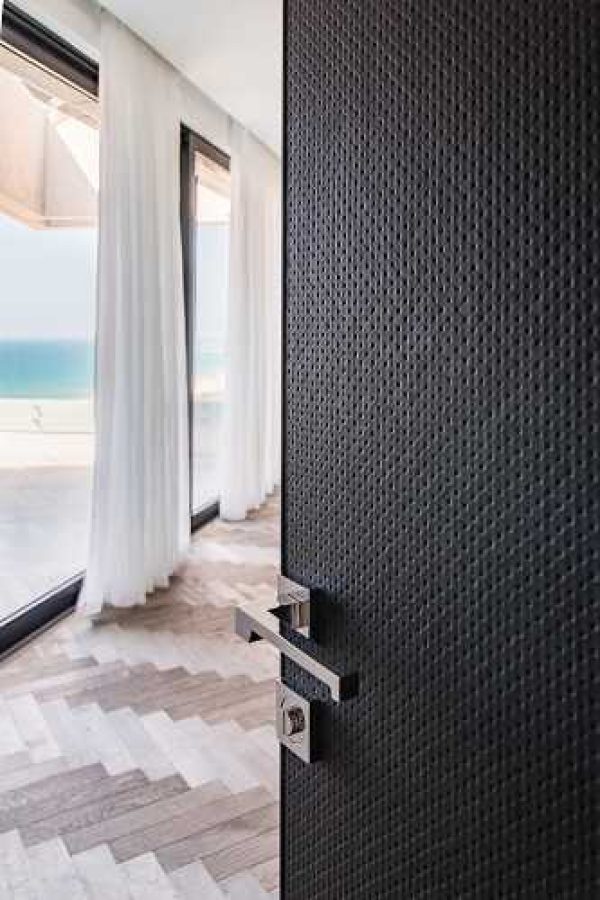 דלת פנים בקו אפס עם צירים נסתרים, המשלבת אלגנטיות עוצרת נשימה עם טכנולוגיה חדשנית. מבנה מדויק המקרין יוקרה ופשטות, עם חומרים איכותיים ומנגנוני נעילה מתקדמים. מידות מותאמות אישית: רוחב עד 110 ס"מ וגובה עד 600 ס"מ.
